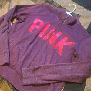 Stylish plum quarter-zip with signature PINK branding. little sun damage on top of sleeve but good condition still