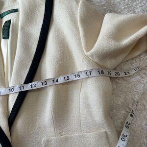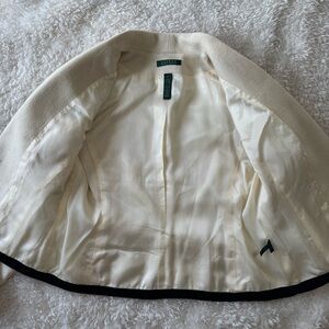 Lauren Ralph Lauren Cream Knit Blazer Black Trim Contrast Career Chic Business Casual Linen