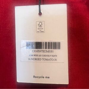 REFORMATION Wide Leg Corduroy Pants High Rise Red