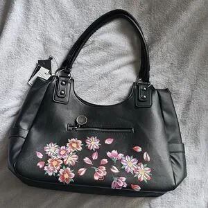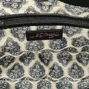 Ed Hardy Black Bag with Floral and Skull Embroidery