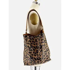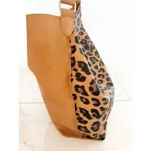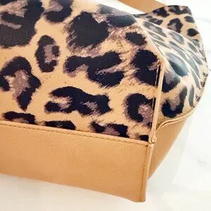Barneys New York Animal Print Leather Brown Tote Bag w/ Pouch NEW