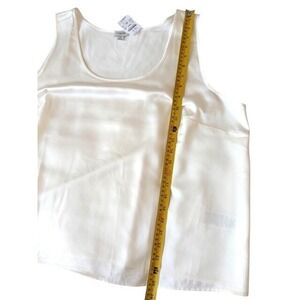 J. Crew sleeveless tank top in a classic cream white shade offers a versatile foundation for any wardrobe. Crafted from smooth 100% polyester with a subtle sheen, this piece features a flattering scoop neckline and a relaxed fit. The lightweight fabric and clean lines make it an ideal choice for layering under blazers or wearing on its own for a minimalist, polished look. This garment is machine washable for easy care and maintains a crisp appearance throughout the day.
