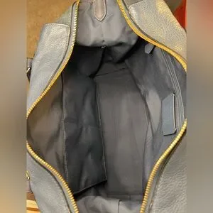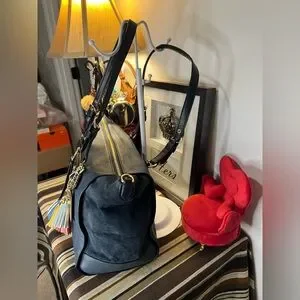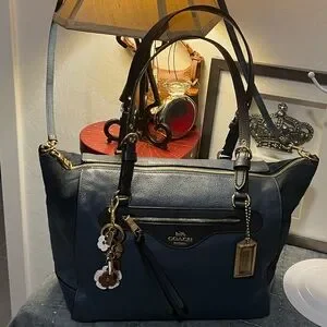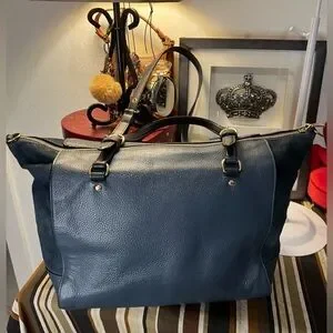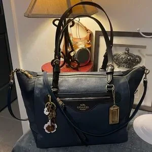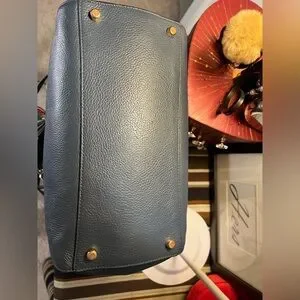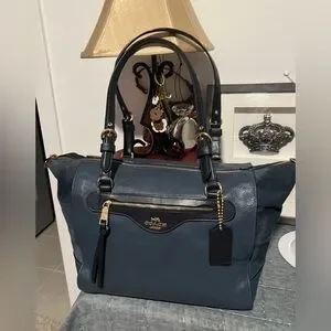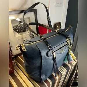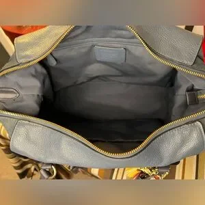 Coach Kleo Carryall Satchel Pebbled Leather and Suede Denim Blue Gold Hardware