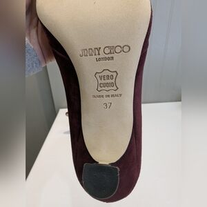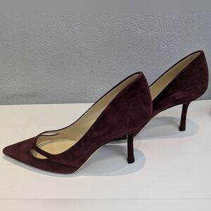 NIB Jimmy Choo Elegant Burgundy Suede Margo Vamp Pumps, SZ 37