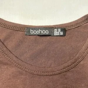 Women’s Boohoo Tank Top, used and worn a lil more than a couple of times. Item does have some stretch to it; it is thin material, light and breathable. The item has lil to no wear and tear, just a tiny knick on the front of the shirt as seen in the last photo. Other than that the item has plenty of life left.