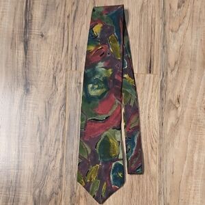 Bold watercolor design with rich colors. Perfect for adding flair to formal wear. Silk. Ties are in style for women this coming year! This is just one way of wearing. A mens tie used in this beautiful scarf way. Listing under women's scarves. See above for measurements.