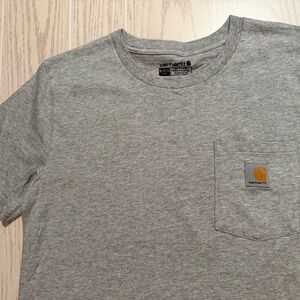 Carhartt boys pocket t-shirt in size XL (18/20), brand new with tags. Classic gray heather color with signature Carhartt logo patch on the chest pocket.
