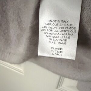 Bianco&Blu light colored V-neck luxury sweater. Textured, fuzzy knit with prominent vertical seam down the center and ribbed detailing at the hem.
