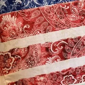 Red, white, and blue patterned top - perfect for that summer party!! Some sparkles in the star pattern, no visible signs of wear. Closet kept, smoke free home!