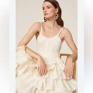 Ulla Johnson Cream Asymmetrical Tiered ruffle Dress wedding engagement