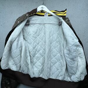 Vintage 80s Aristo Jac by Hilton Satin Jacket Mens Medium Keg Club Corner Pocket Package Liquor Cheyenne Wyoming Brown Snap Botton Quilted Lined