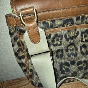 RALPH LAUREN Messenger Canvas Leather Flap Animal Print Bird Hunting Bag Purse