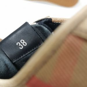 Stylish Burberry sneakers with iconic checkered pattern. Features tan and black colors. Comfortable and trendy design.