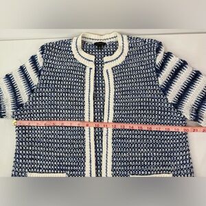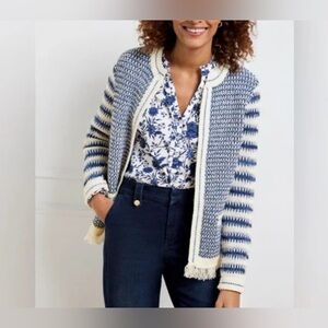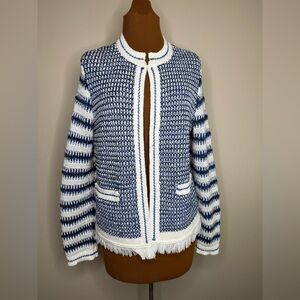 Talbots Mixed Knit Open Front Sweater Fringed Hem and Pockets Size Medium