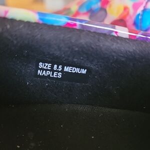 Vibrant mules with multicolor polka dots. Comfortable and stylish design. Perfect for casual wear.