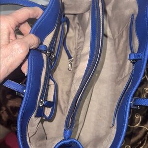 Elegant Michael Kors tote in striking royal blue. Features sleek design and ample space. Perfect for daily use.