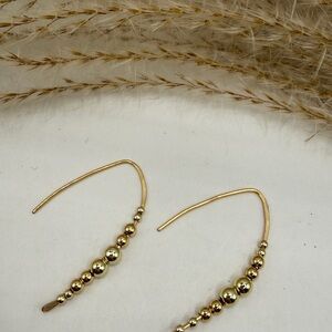 These elegant gold beaded earrings add a touch of sophistication to any outfit. Perfect for any occasion.