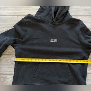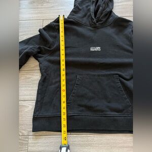 All Saints|Solid black hoodie pullover sweater with small simple logo•••Large