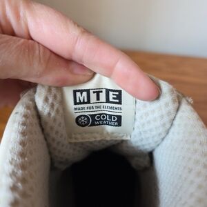 Vans unisex Standard Mid Snow MTE boots in a vintage white colorway. This model is a downsized, more packable version of the classic Standard Snow MTE, designed for versatile wear in winter weather. Mens size 9 Womens size 10.5