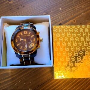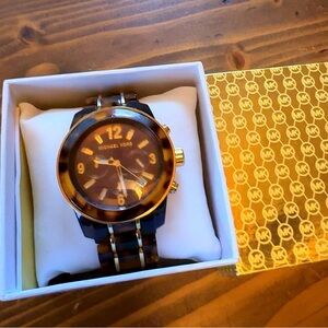 Authentic Michael Kors brown tortoise & gold-tone chronograph watch 🤎✨