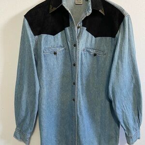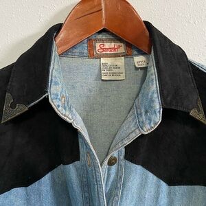 Vintage Western Denim Suede Metal Detailed Long Sleeve Button-Down Shirt
