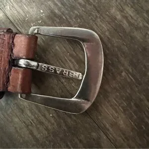 Leather belt made in India. Size M/L with a brass buckle.
