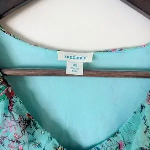 Sundance Colorful Boho Turquoise Floral Ruffle Blouse