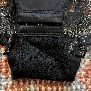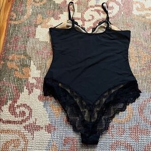 Pinsy Sculpting Lace Bodysuit in black, size XL, in excellent used condition. This piece combines elegant lace detailing with smoothing, sculpting support for a flattering silhouette. Soft, stretchy, and comfortable, it works perfectly under dresses or tops for a seamless look. A stylish and versatile shapewear essential for any wardrobe.