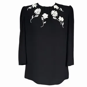 Black structured top with white floral embellished appliqué (beads/embellishments)
