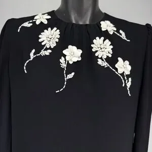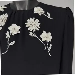 PRADA ASOTV Glamoretti Black Floral Beaded Embellished 3/4 Sleeve Blouse IT 42