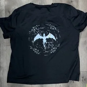 Black t-shirt with a bold graphic design. Comfortable and stylish. Buttery soft