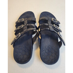 Vionic Misa Sandals Navy Blue Leather Slide Slip On Adjustable Women's Size 8