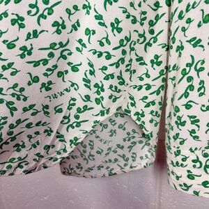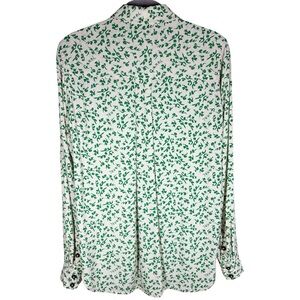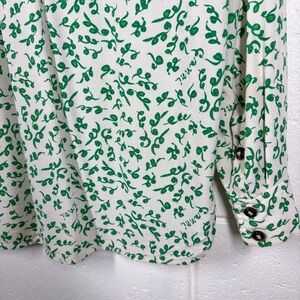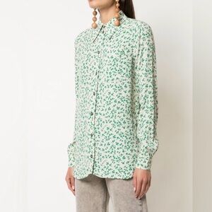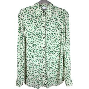 Ganni Leaf Print Crepe Button Down Blouse Top Size 0 Ivory Green Longsleeve