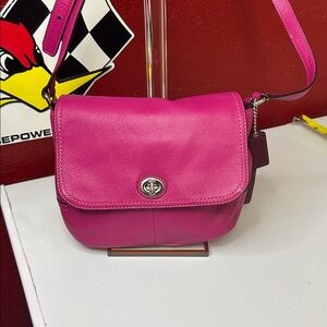 Bold pink crossbody with turn-lock closure. Ideal for daily use.