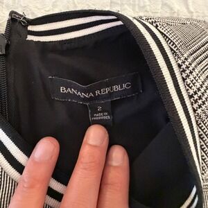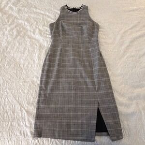 Banana Republic Grey Glen Plaid Sleeveless Sheath Dress Striped Neck Size 2