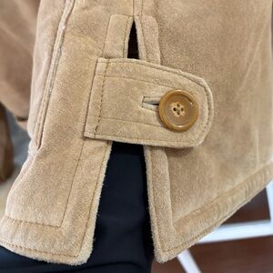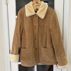 Dennis Basso WOMENS Shearling Genuine Leather Coat - Size L - Tan - Fully Lined - front buttons closer - pre owned - excellent condition