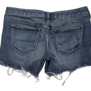 Express Jeans Women’s Size 6S Denim Shorts Low Rise Distressed Hem Blue EUC