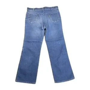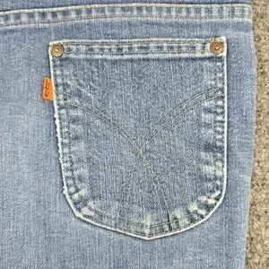 Vintage Levi's orange tab jeans dated 1983 based on interior tag code. Made in USA lightweight denim with classic 5-pocket construction, zipper fly, copper rivets, and orange tab on rear pocket. Straight/bootcut style with a little extra room through the seat and thigh compared to modern slim fits. Medium blue wash with natural fading from wear. Good vintage condition with normal signs of age and use but no major structural issues visible. Tagged vintage size differs from modern sizing; measures 34x29. Clean, wearable pair of early-80s Levi's with desirable orange tab and USA production.