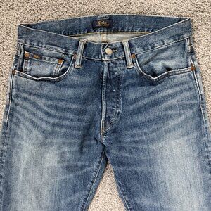 Offered here is a pair of Polo Ralph Lauren The Hampton Relaxed Straight Jeans in Men's Size 30x30. They are in the Lightweight Morris Wash which is Polo's lighter worn-in look.