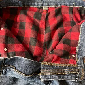 These Eddie Bauer Blue jeans offer a relaxed fit with a flannel-lined interior for added warmth and comfort. Constructed with durable denim, they are ideal for colder weather.