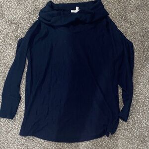 Chic navy maternity sweater with a cozy cowl neck. Perfect for layering and staying warm.