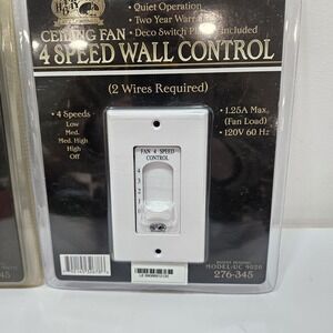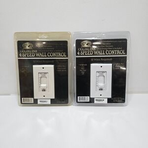 2 brand new and sealed fan speed control switches. Packaging is worn and damaged. One of the switches is yellowed from sun damage/fading. So the plastic on the switvh itself is yellowed. You will receive exactly what you see. Sold as is with no returns. Thanks for looking.