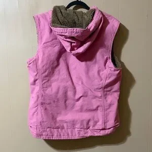 Vintage pink women’s Carhartt vest like new. Size large (12/14). Sherpa lined and hooded.