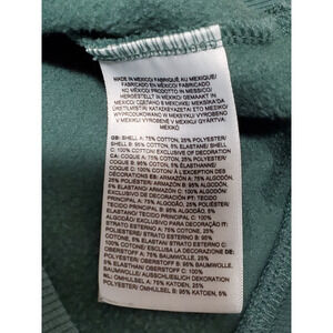 The North Face Women's Green Logo Pullover Hoodie is a stylish and functional outdoor casual sweatshirt perfect for all seasons. Made from a cozy fleece fabric with a polyester lining, this hoodie features a crew neck and raglan sleeves for comfort. The pullover style, hood, and pockets add practicality to this activewear piece, making it ideal for walking, hiking, or running & jogging. Showcasing the iconic The North Face logo, this hoodie in size small is a must-have for any outdoor enthusiast looking for a versatile and quality garment.