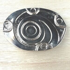 **Vintage Belt Buckle Brooch Brutalist Abstract Modernist Silver Tone Swirl Textured Oval Pin**