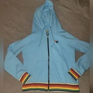 Like New Aviator Nation Blue Hoodie with Rainbow Zip Up