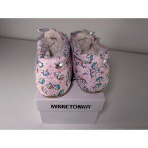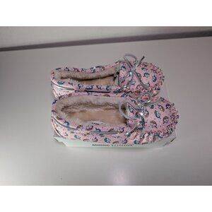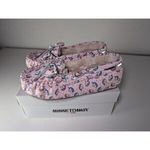 Minnetonka Moccasins Girls Size 13 Slipper Shoes Pink Unicorn Print Sherpa Lined
