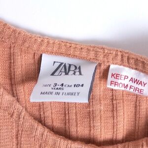 This Zara dress features a ribbed knit bodice with button details and ruffle cap sleeves, transitioning into a textured woven skirt with a gathered waist. The earthy terracotta hue and mixed-media construction offer a comfortable yet stylish look for everyday wear.