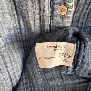 NATURAL LIFE Denim Blue Cotton Gauzy Shirtdress Tunic NWT Long Rollable Sleeves