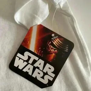 Star Wars T-shirt. New with tags. Screen printing in black with velvet “A” in Wars. Color: white Size Medium. Measurements laying flat: